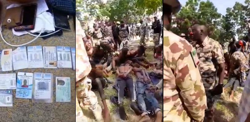 Suspected male students of the University of Maiduguri who allegedly pose as Boko Haram members to attack their fellow students and steal from them, have been apprehended by men of the Nigerian Army. A video making the rounds on social media, shows some military officers with the apprehended ''students''.