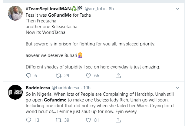 "We deserve something worse than this Govt" - Angry Nigerians disapprove of those raising money for Tacha through 'GoFundMe'
