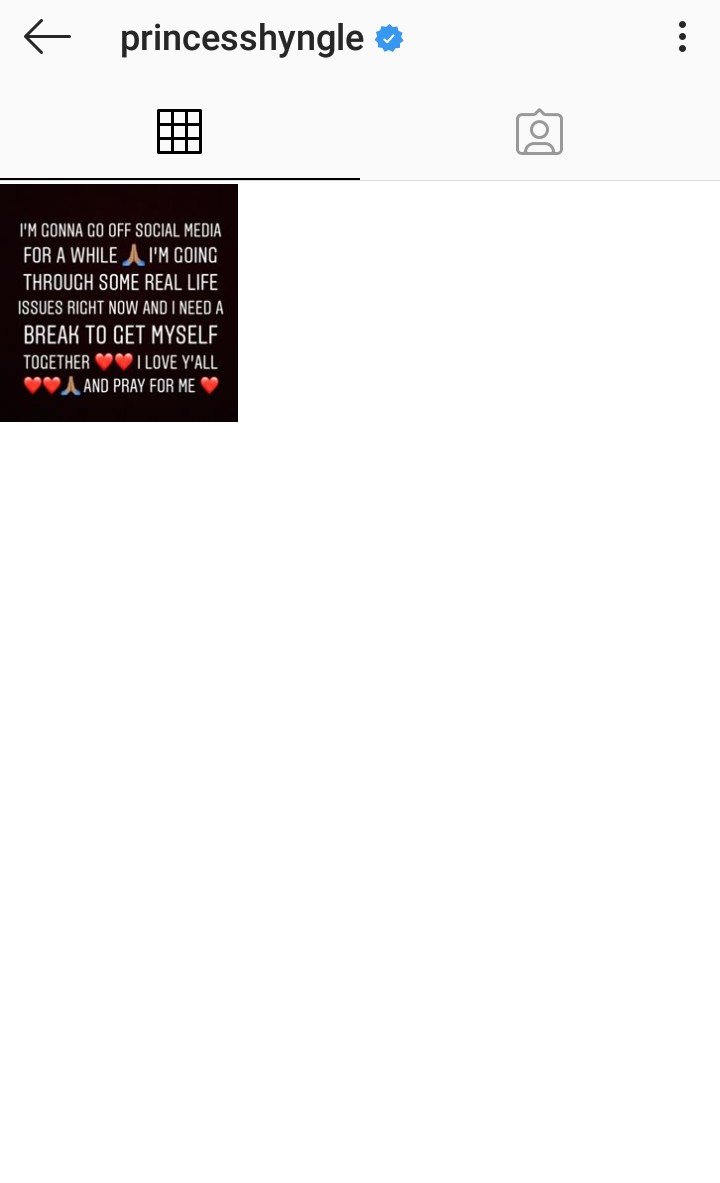 Trouble in paradise? Newly engaged Princess Shyngle deletes all IG posts and reveals she taking a break because she's "broken and in serious pain"