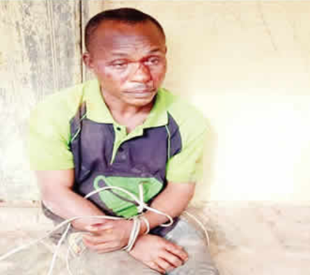 The Imo state police command have arrested 47 year old Sunday Agwim, pictured above, for allegedly murdering his 62-year-old mother in their home at Umuobom in the Ideato South Local Government Area of Imo State. Confirming the incident, the spokesperson of the state police command, Orlando Ikeokwu, said the command received a report from members of the community that the suspect ''murdered his mother using a hammer and a machete on her head and ''completely grounded the head into powder beyond recognition with the hammer.'' Ikeowku says police arrived the scene of the incident and found the remains of the deceased. The police took the body to the mortuary where an autopsy would be carried out on her. He added that the suspect has confessed to the crime but says he doesn't know what came over him. The police spokesperson says the matter is still being investigated and would be charged to court soon.The post