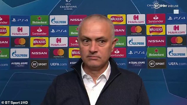Tottenham boss, Jose Mourinho has launched an extraordinary rant after his team fell to a 1-0 loss to RB Leipzig in the Champions League on Wednesday night.Timo Werner's second half penalty was the difference between both sides even though Leipzig enjoyed the greater share of possession and out played Tottenham for majority of the match but Mourinho has staunchly defended his players in an extraordinary four-minute rant with BT Sport's Des Kelly.