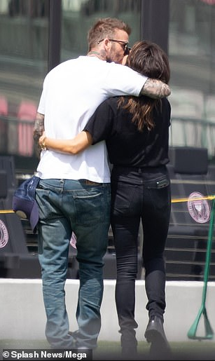 In photos from the outing, David and Victoria are seen with their arms around each other. The couple went for a stroll on the pitch and shared a kiss while they toured the new stadium.