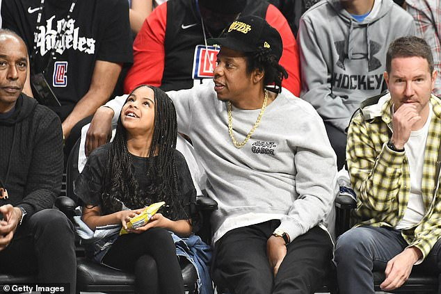 Rapper Jay-Z and daughter Blue Ivy Carter watch basketball game together in Los Angeles (photos)