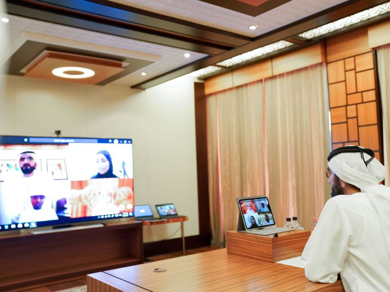 Viral photos of Vice President of UAE Sheikh Mohammed holding virtual cabinet meeting with several ministers on coronavirusÂ
