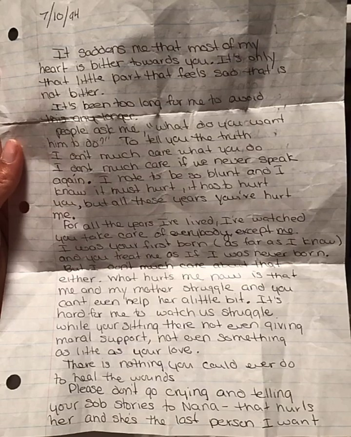 Alicia Keys took to Instagram to share a letter she wrote to her absentee dad when she was a teenager. In the letter written in 1994, the singer poured out her heart to her father. She told him she was tired of being stood up by him, tired of waiting for him to show up in her life, and that she didn't want to see him anymore.