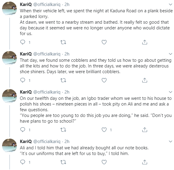 The story of a former almajiri as told by writer Japheth Prosper has been shared and widely read on Twitter. The story, said to be a true story, tells of the life of an Almajiri, named Abubakar, who, together with his friend Ali, managed to leave the Almajiri system in Kano under the tutorship of one Mallam Ladan. They were eventually helped by a Nigerian couple and they succeeded in rising above their lowly position. Read the story below.
