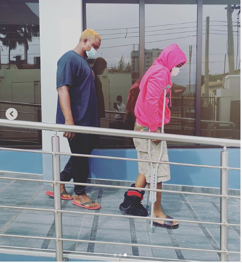 Davido fractures his leg, now using crutches  (photos)