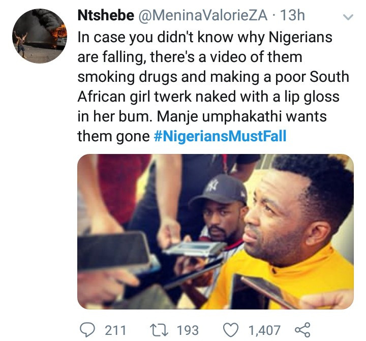 South Africans are calling for Nigerians to leave their country after a video went viral, showing a woman, believed to be from South Africa, twerking for some Nigerian men. #NigeriansMustFall is the number 1 trending topic on Twitter at the moment. South Africans are using the hashtags #NigeriansMustFall and #NigeriansMustGo to call out Nigerians, while blaming them for the rot in their society.