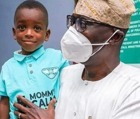 Lagos State governor, Sanwo-Olu meets the boy in the "mummy calm down" video (photos)
