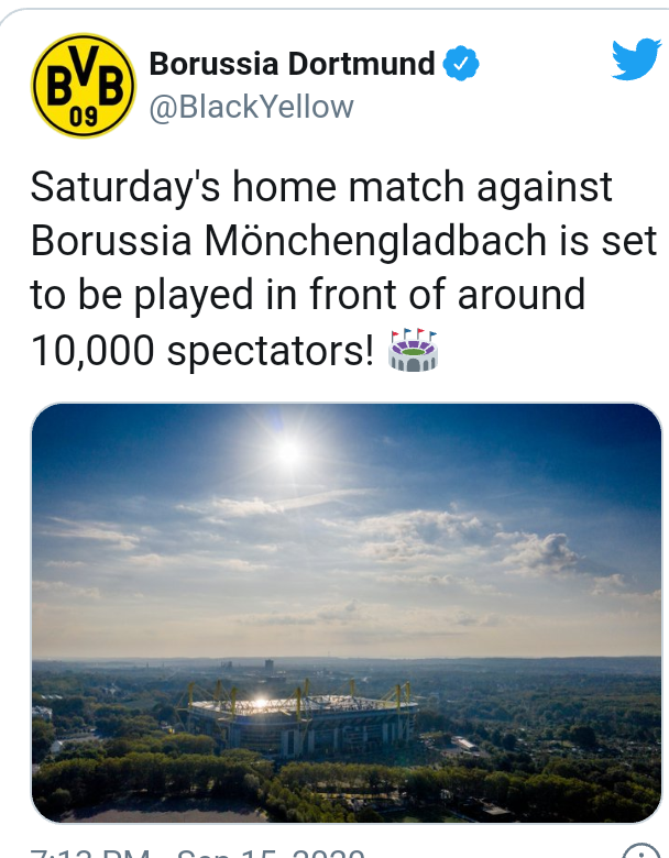 Covid-19: Borussia Dortmund set to host 10,000 fans in their Bundesliga opening match