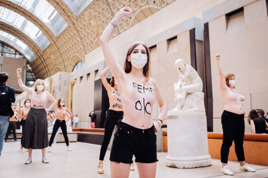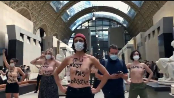 Watch the video below. "L'obscénité est dans vos yeux !"C'est le slogan qu'ont scandé ces Femen dans le hall du musée d'Orsay pour dénoncer la sexualisation du corps des femmes. pic.twitter.com/yRQqp2nziT— Brut FR (@brutofficiel) September 14, 2020The post