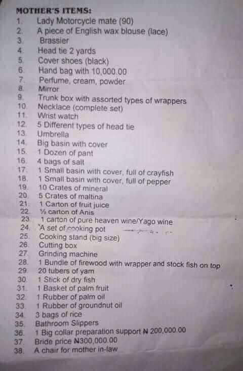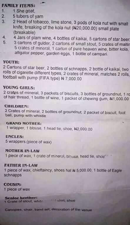 The post See list of marriage items reportedly made by a Nigerian family appeared first on Linda Ikeji Blog.from https://ift.tt/3bvfGWx