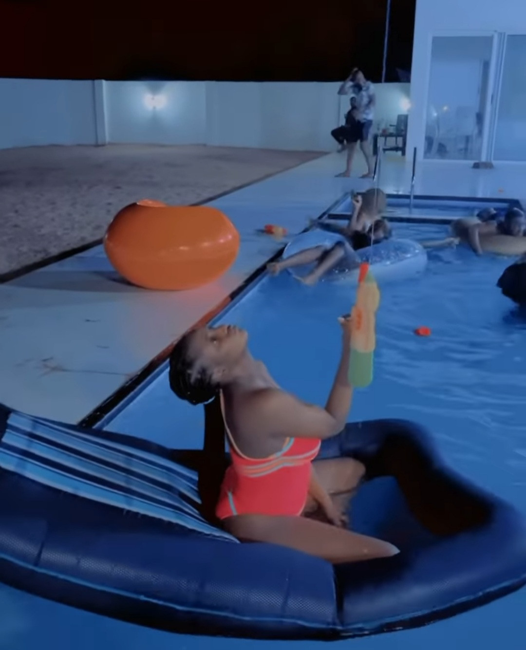 There was also a mock fight between Simi and her friends on the bouncy castle and a water gun fight in the pool.